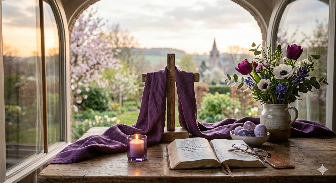 De paaskaars (geschonken door zustergemeente Mosel) De liturgiecommissie werkt aan het gebruikelijke project, ter ondersteuning van de stille tijd. De Klassieke Symbolen De Specifieke Afbeelding: